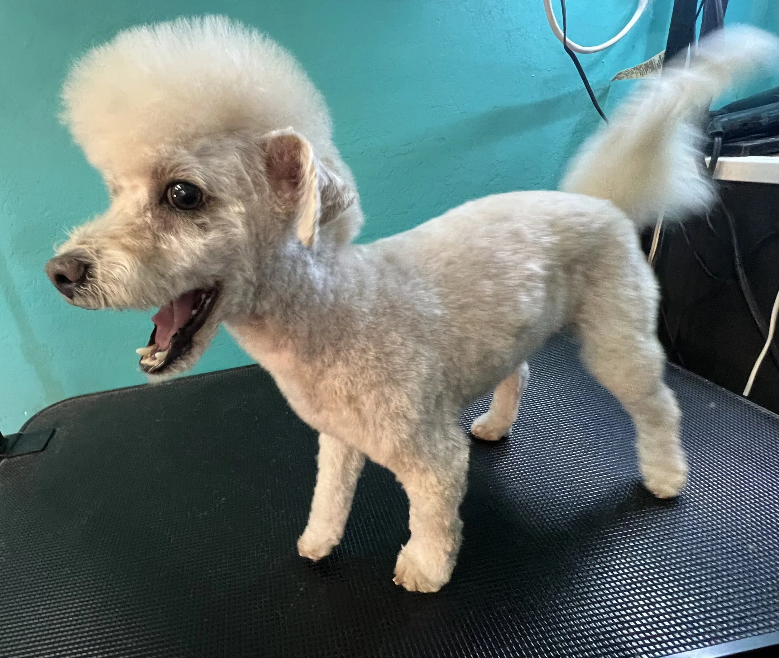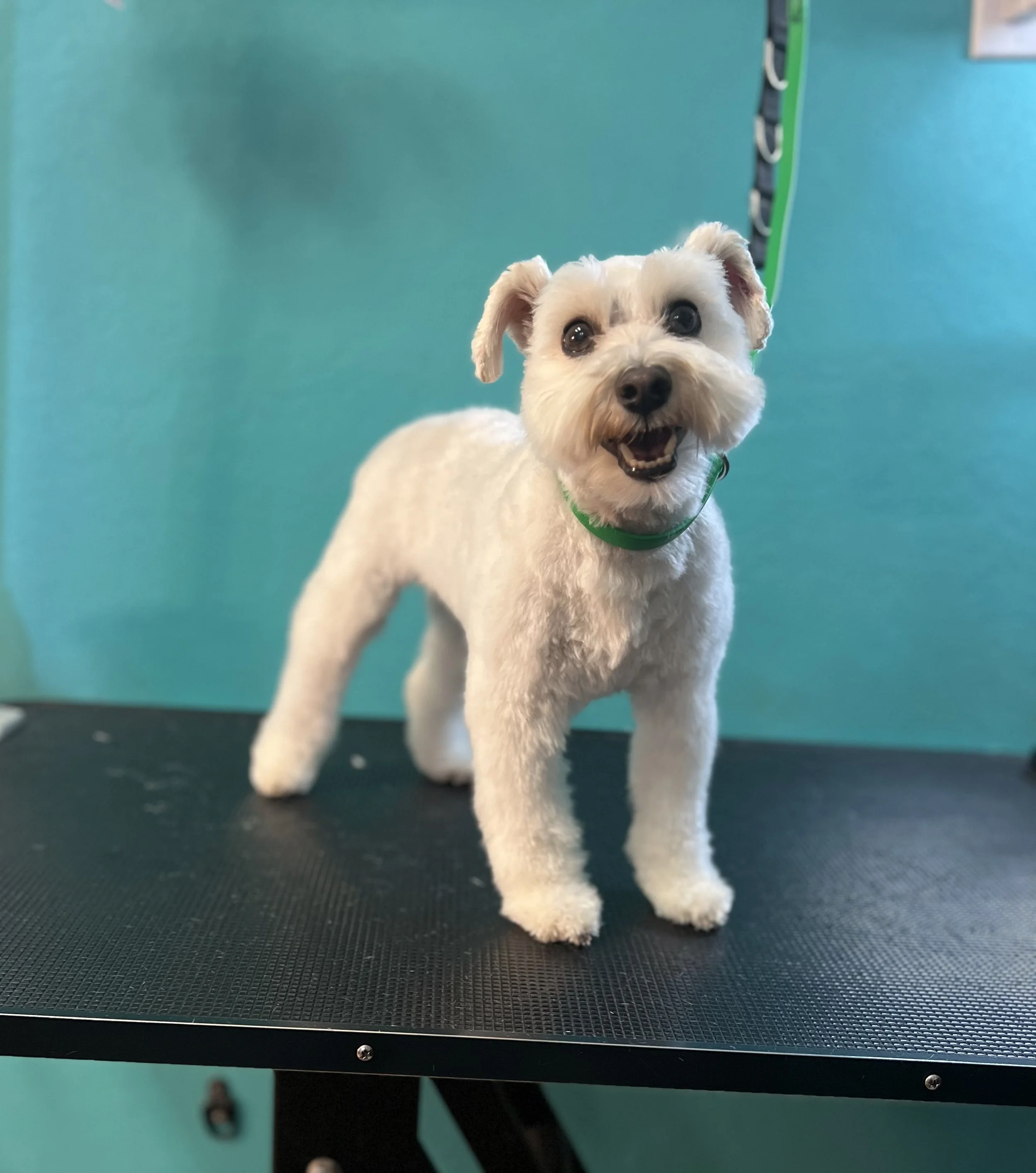 All full grooming services include: Haircut, bath, blow dry, brushing, ear cleaning, ear hair removal (if needed), nail grind, gland expression (by request only). Starting at $50 * Price is based off of size, breed, haircut type, and coat conditioning.